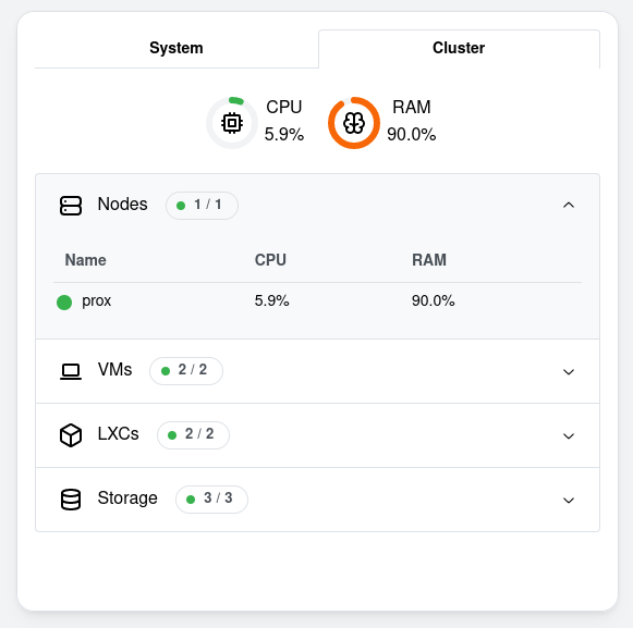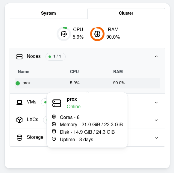 Show LXCs section | Shows LXCs section on the Cluster display | yes / no | yes |