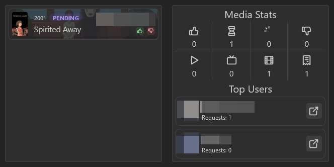 • Request stats: Provide a statistics overview of your media requests, such as mount of requests, open requests, approvement and rejections.