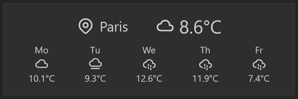 The Weather Widget uses your location to display the current, highest and lowest temperature. The Widget uses open-meteo.com to retrieve weather data.
